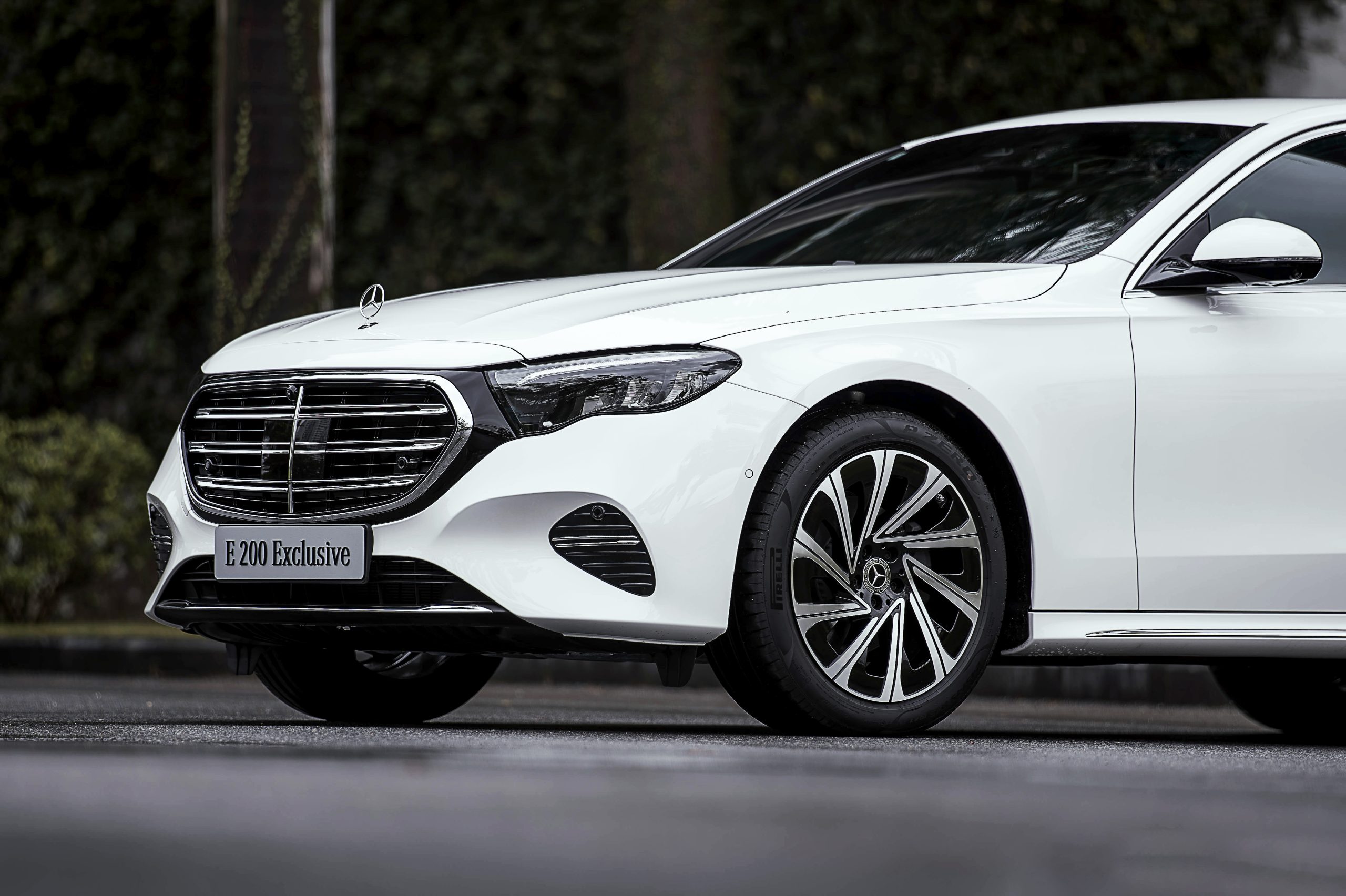 Hãy hình dung bạn dừng Mercedes E200 Exclusive 2025 tại một sự kiện sang trọng, màu sơn Trắng Diamond lấp lánh dưới ánh đèn, lưới tản nhiệt cổ điển kiểu S-Class và mâm 18 inch tạo ấn tượng mạnh mẽ với đối tác. Thiết kế ngoại thất này không chỉ là biểu tượng của sự thanh lịch mà còn là sự khẳng định phong cách sống thượng lưu.